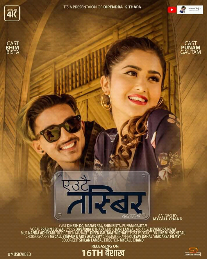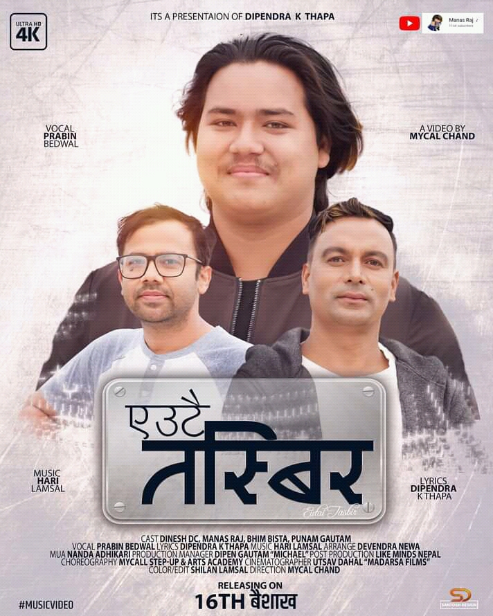 जिबि आग्री : काठमाडौँ। हरि लम्सालको संगीत तथा प्रविन बेडवालको स्वरमा रहेको गीत ‘एउटै तस्विर’ सार्वजनिक गरिएको छ यो गीतका शब्दकार दिपेन्द्र के थापा हुन् ।
