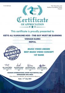 विशाल इन्टरटेनमेन्टको “केटो अलि कमाउने होस” गीतबाट विधानलाई ‘उत्कृष्ट म्युजिक भिडियो कन्सेप्ट अन्तर्राष्ट्रिय अवार्ड’