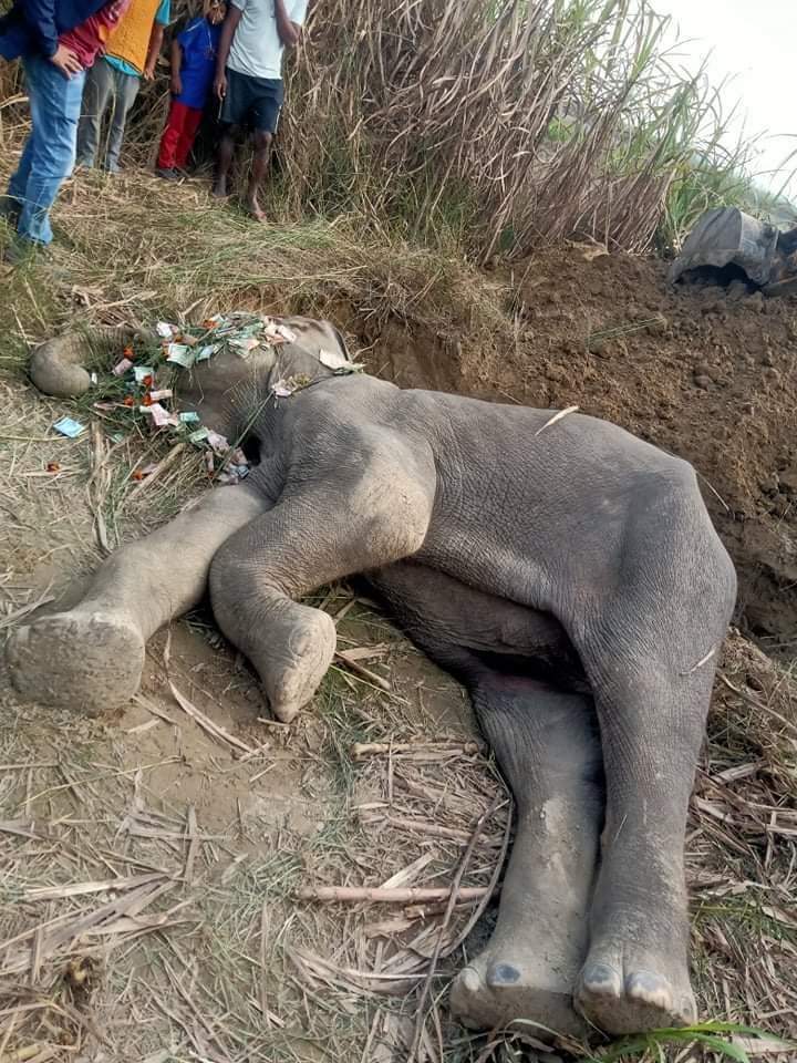 स्थानीय जनप्रतिनिधि, सुरक्षा निकाय र वनकर्मचारी र सहायक वन अधिकृत दिनेश कुमार यादवको उपस्थितिमा आवश्यक कानूनी प्रक्रिया पूरा गरीएको छ । हात्तिलाई सोही स्थानमा डोजरले खनेर गाडिएको हाम्रा संवाददाता अर्जुन आउजीले जानकारी गराएका छन ।