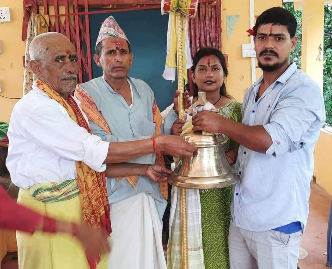 कञ्चनपुर/ पुनर्वास नगरपालिका-५ घर भई हाल अमेरिका बस्दै आएका दाजुभाईले स्वर्गीय बुवाको सम्झनामा मन्दिरलाई घण्टी र त्रिशुल सहयोग गरेका छन् ।