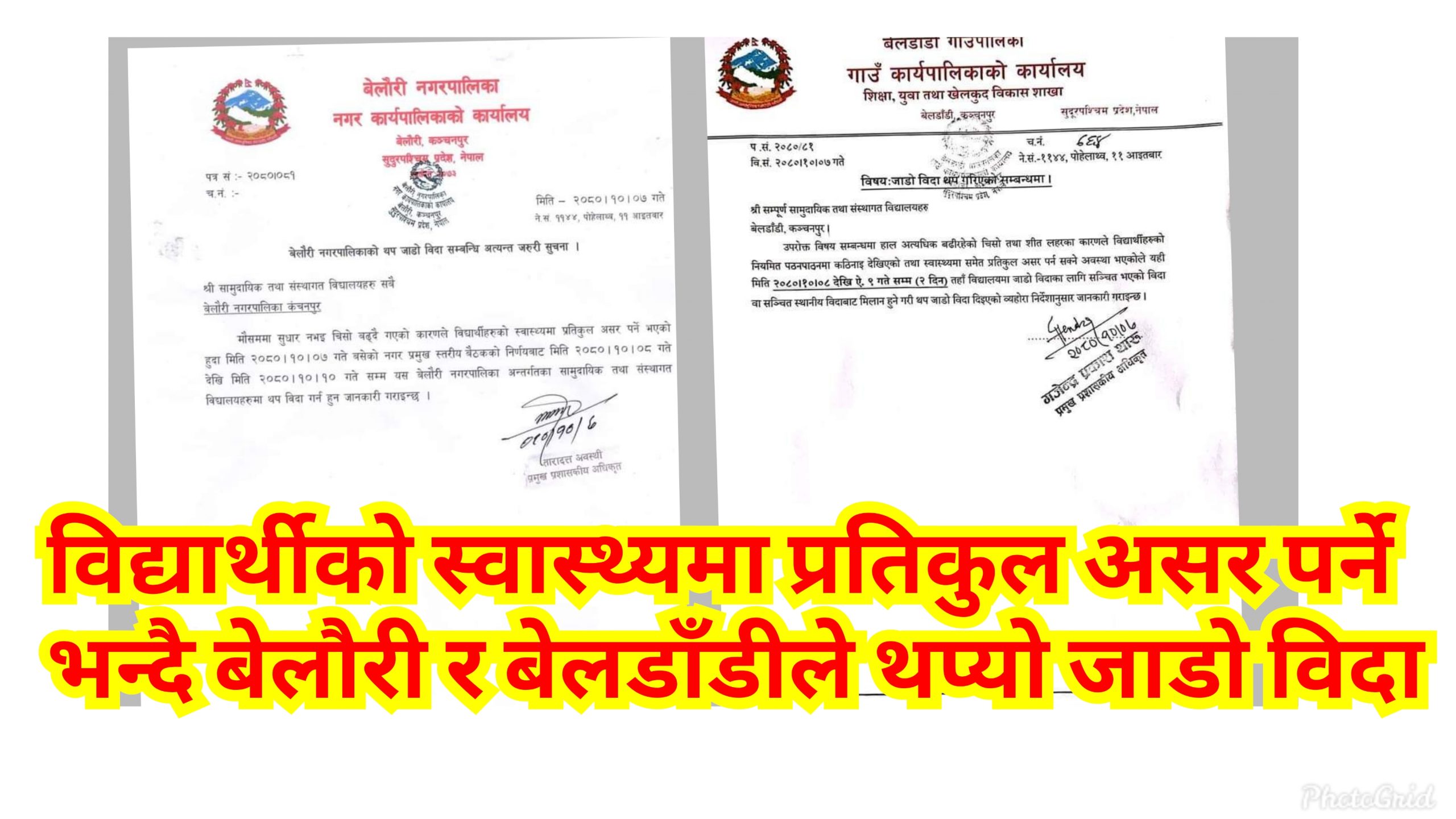 Return to "विद्यार्थीको स्वास्थ्यमा प्रतिकुल असर पर्ने भन्दै बेलौरी र बेलडाँडीले थप्यो जाडो विदा" PhotoGrid_1705833155451